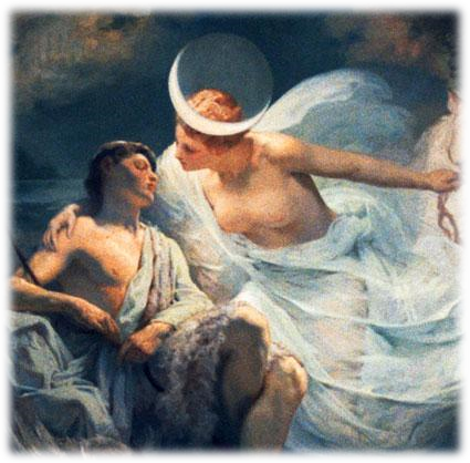 La presenza dell’Occhio della notte (come definita da Eschilo), è spesso considerata faro di atmosfere romantiche, ormai associata nell’immaginario collettivo a circostanze che incorniciano sentimenti d’amore. Questo è forse il risultato di uno dei più celebri miti che la vedono protagonista, ovvero quello del giovane Endimione. Diverse versioni del racconto collidono tra loro, ma tutte concordano che il pastore mortale Endimione fosse un uomo bellissimo, di cui Selene si innamorò perdutamente. Nella versione che preferisco, i due intrecciano una storia tanto intensa quanto resa impossibile dal tempo e dalla mortalità del giovane. Dopo molti felici e spensierati anni insieme, e dopo aver generato ben cinquanta figlie, i due vengono raggiunti dall’angosciante realizzazione che la morte li avrebbe prima o poi separati. Decidono dunque di chiedere a Zeus il sonno eterno per Endimione, in modo che la sua amata possa andarlo a trovare ogni notte all’interno di un’immutabile grotta, per il resto dei tempi. In altre versioni, meno poetiche, il sonno del pastore non è nient’altro che un capriccio della dea, che vedendo il mortale addormentato e volendo che la sua bellezza non fosse scalfita dal tempo, pregò Zeus di donargli un sonno perpetuo per poterlo ammirare eternamente. Ciò in cui le versioni concordano, è l’attribuzione a Selene di doti positive: al contrario di altri dei è sempre benevola, riservata e definita negli inni orfici come “nemica della guerra”.